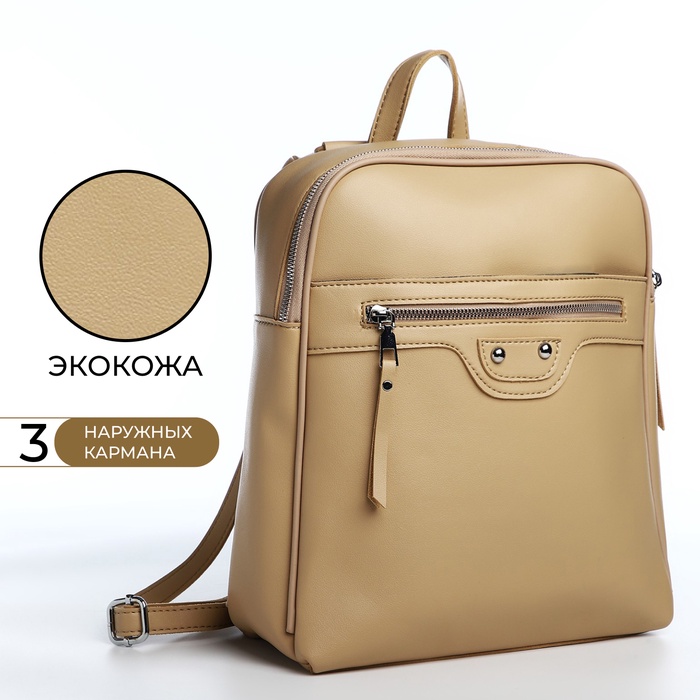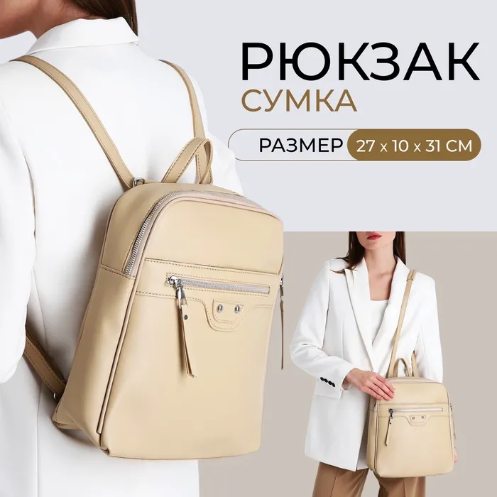 Рюкзак-сумка Astraria на молнии, с карманами, бежевый — Характеристики