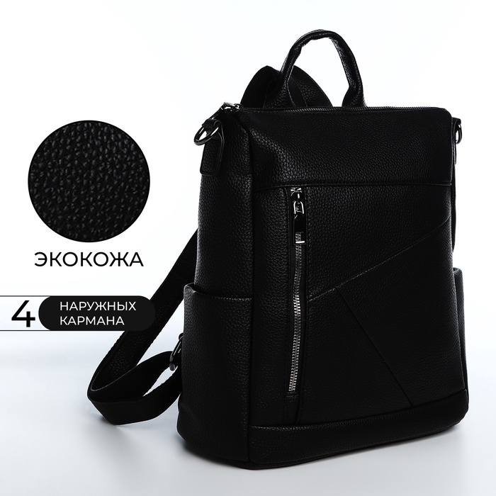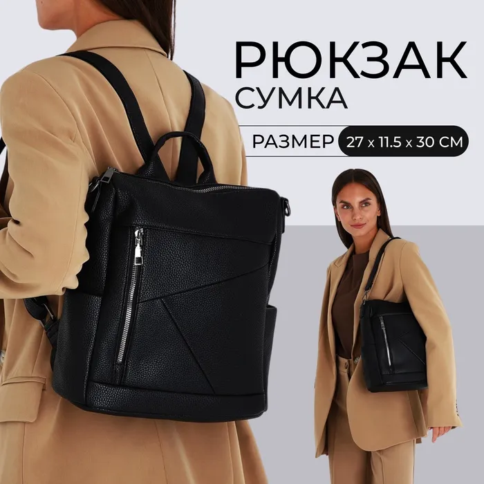 Рюкзак-сумка Iridia на молнии, с карманами, чёрный — Характеристики