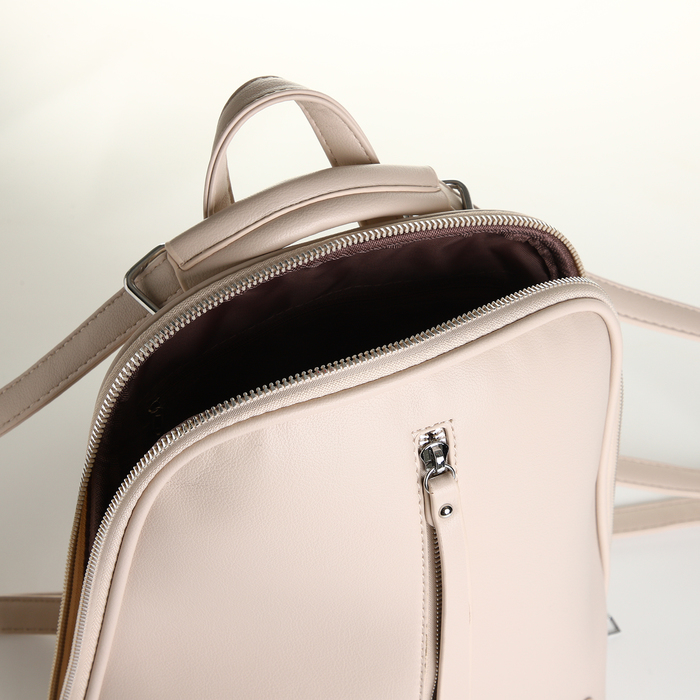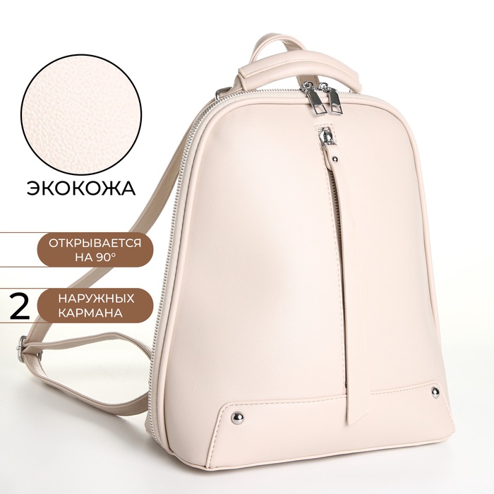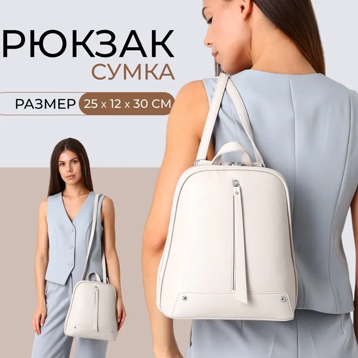 Рюкзак-сумка из искусственной кожи на молнии, цвет бежевый — Характеристики