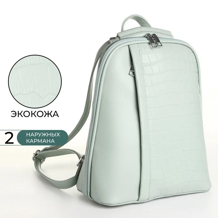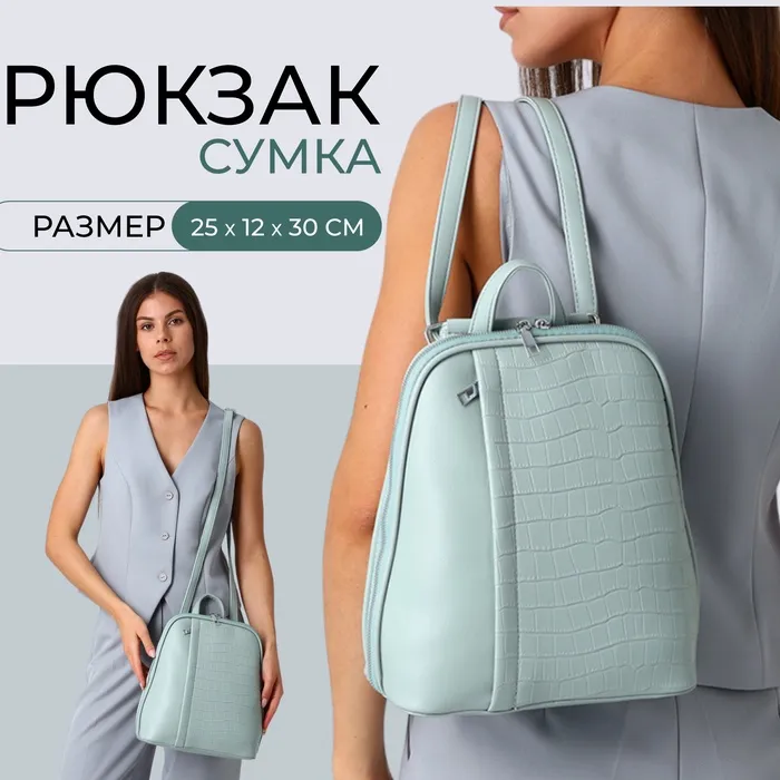 Рюкзак-сумка из искусственной кожи на молнии, цвет мятный — Характеристики