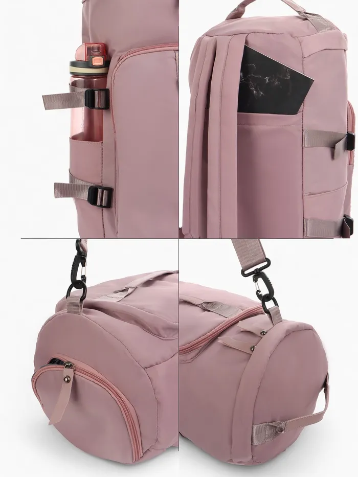 Рюкзак-сумка на молнии, с карманами, отделение для обуви, розовый — Характеристики