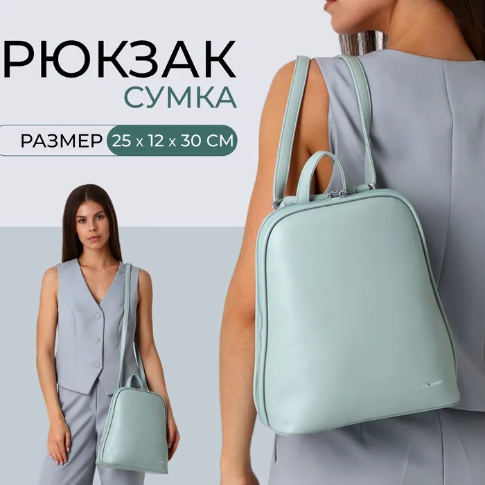 Рюкзак-сумка женский Solaris на молнии, зелёный — Характеристики