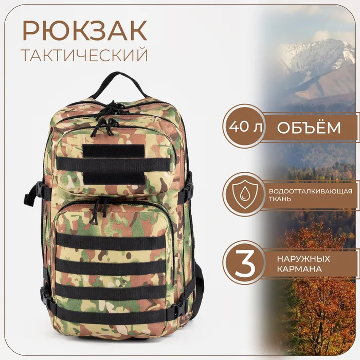 Рюкзак тактический, Taif, 40 л, отдел на молнии, 3 наружных кармана, цвет камуфляж/бежевый — Характеристики
