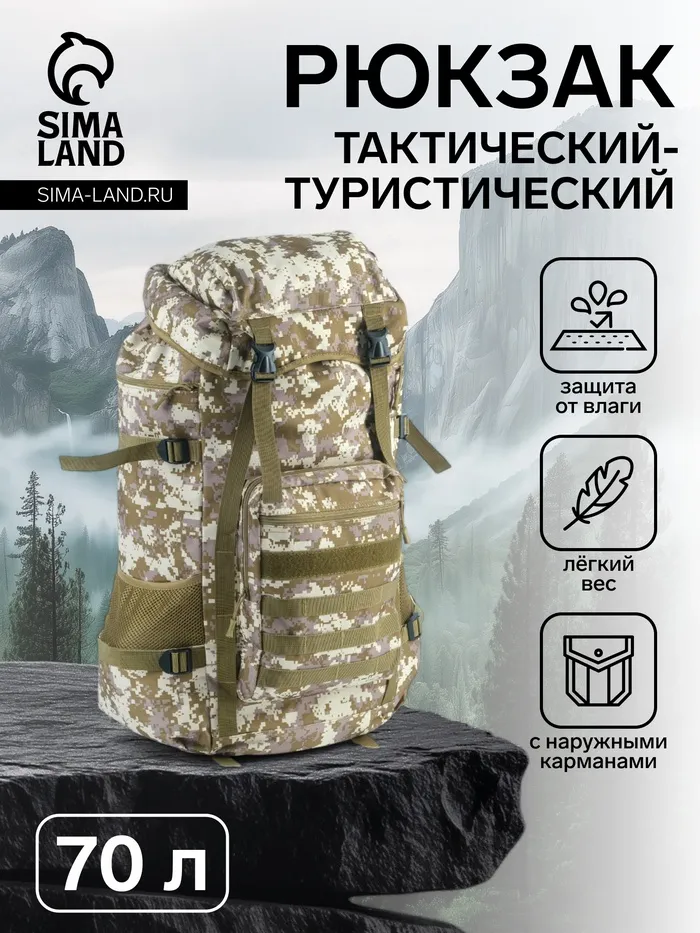 Рюкзак тактический туристический Adventure, 70 л, с карманами, расцветка пиксели, бежевый — Характеристики
