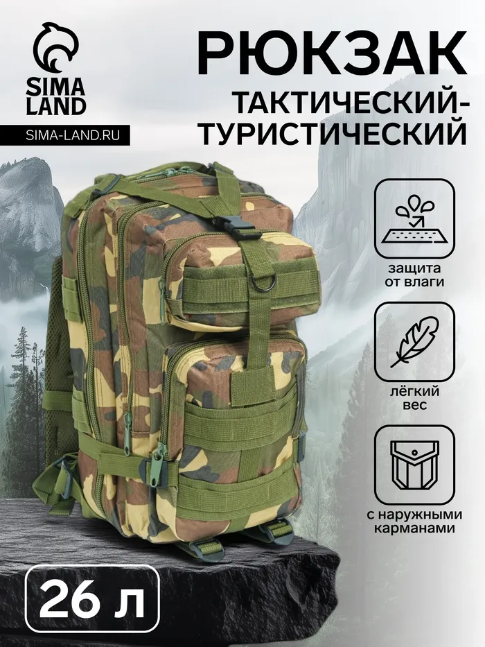 Многофункциональный рюкзак изготовлен из специальной износостойкой ткани, для самого широкого применения. Выполнен из влагостойкого материала - ткани оксфорд. Сумка, рюкзак идеально подходит для охоты, рыбалки, туризма и активного отдыха. Рюкзак камуфляжный армейский, тактический оснащен эргономичными лямками и системой MOLLE для навески дополнительного снаряжения. Мягкая спинка обеспечит комфорт в походных условиях и снизит нагрузку при переноске тяжестей по неровной горной местности.