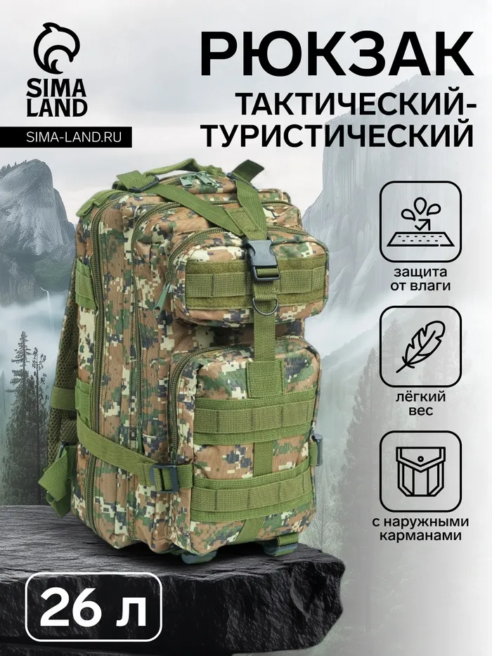 Рюкзак тактический туристический Storm tactic, 26 л, с карманами, расцветка пиксели, зелёный — Характеристики