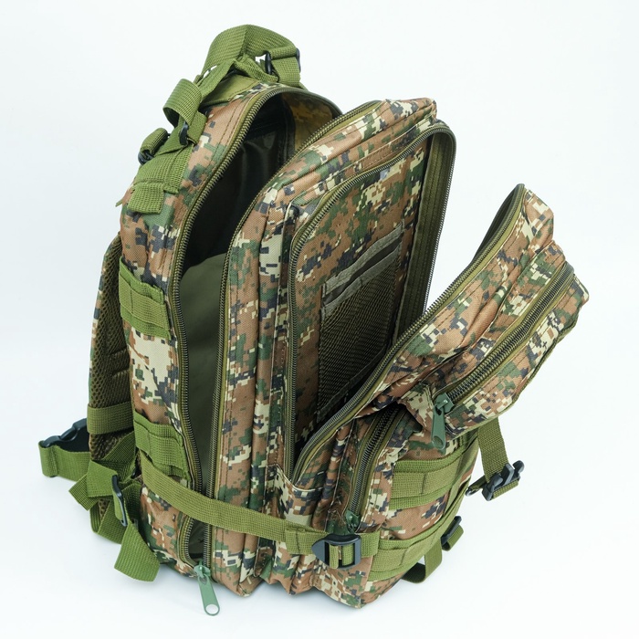 Многофункциональный рюкзак изготовлен из специальной износостойкой ткани, для самого широкого применения. Выполнен из влагостойкого материала - ткани оксфорд. Сумка, рюкзак идеально подходит для охоты, рыбалки, туризма и активного отдыха. Рюкзак камуфляжный армейский, тактический оснащен эргономичными лямками и системой MOLLE для навески дополнительного снаряжения. Мягкая спинка обеспечит комфорт в походных условиях и снизит нагрузку при переноске тяжестей по неровной горной местности.