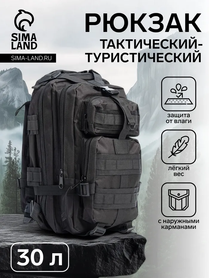 Рюкзак тактический туристический Storm tactic, 30 л, с карманами, однотонный, чёрный — Характеристики