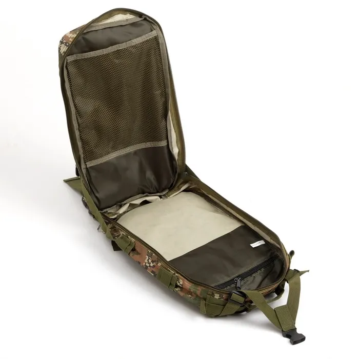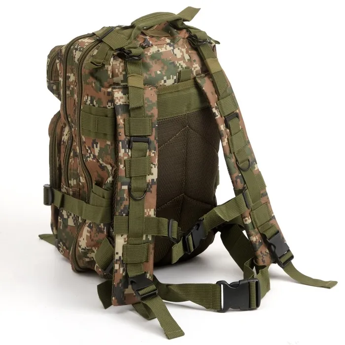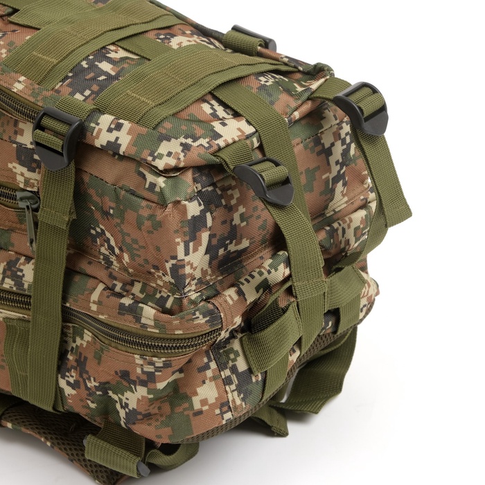 Многофункциональный рюкзак изготовлен из специальной износостойкой ткани, для самого широкого применения. Выполнен из влагостойкого материала - ткани оксфорд. Сумка, рюкзак идеально подходит для охоты, рыбалки, туризма и активного отдыха. Рюкзак камуфляжный армейский, тактический оснащен эргономичными лямками и системой MOLLE для навески дополнительного снаряжения. Мягкая спинка обеспечит комфорт в походных условиях и снизит нагрузку при переноске тяжестей по неровной горной местности.