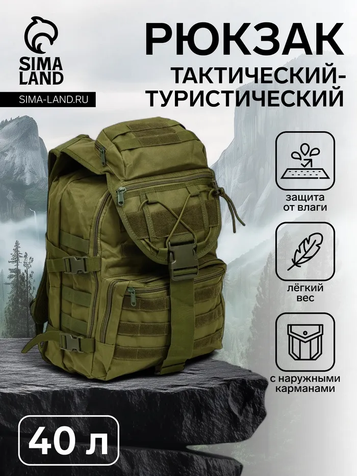 Рюкзак тактический туристический Storm tactic, 40 л, с карманами, однотонный, оливковый — Характеристики