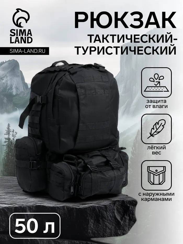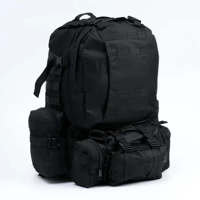 Рюкзак тактический туристический Storm tactic, 50 л, с карманами, однотонный, чёрный — Характеристики