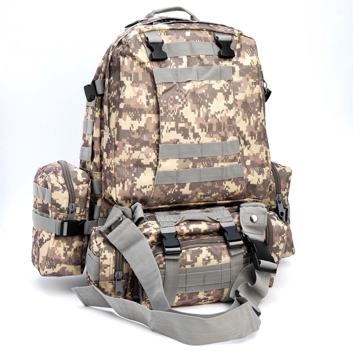 Рюкзак тактический туристический Storm tactic, 50 л, с карманами, расцветка пиксели, серый — Характеристики