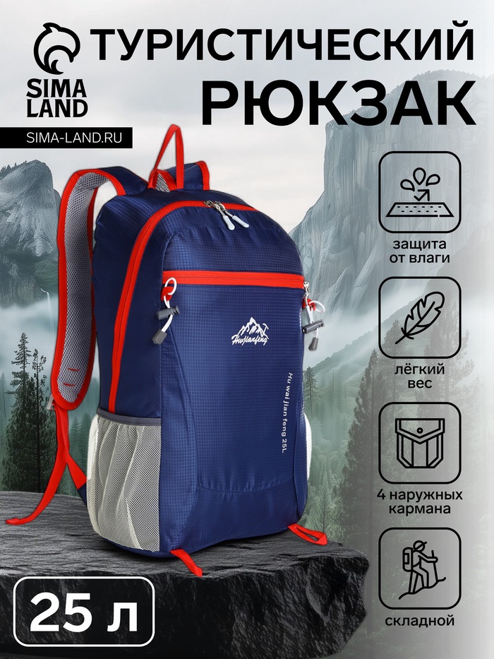 Рюкзак туристический 25 литров, складной, водонепроницаемый, с карманами, синий — Характеристики
