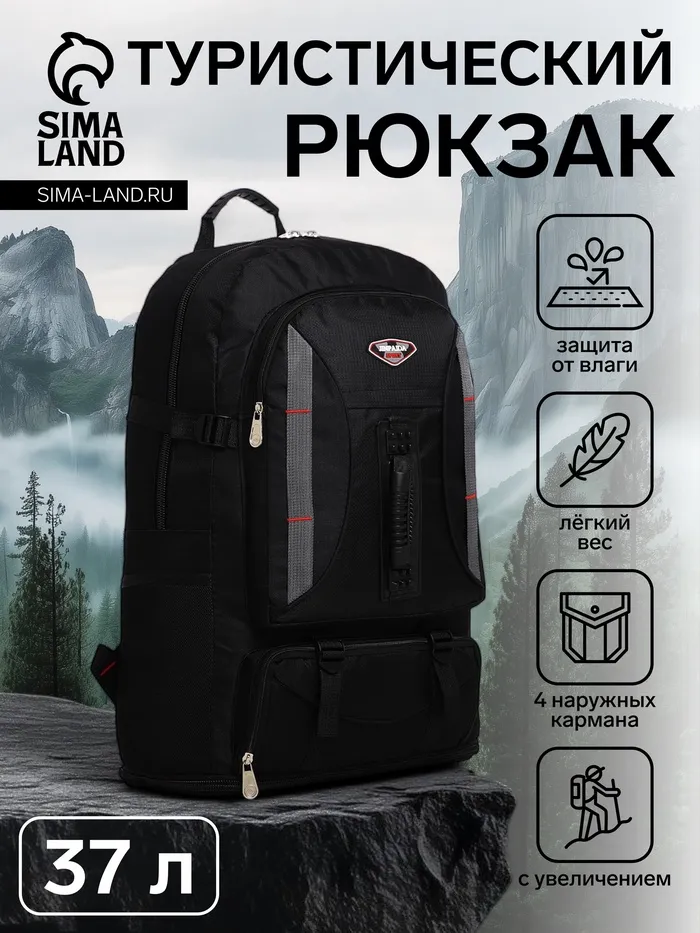 Рюкзак туристический 37 литров, с карманами, с увеличением, чёрный — Характеристики
