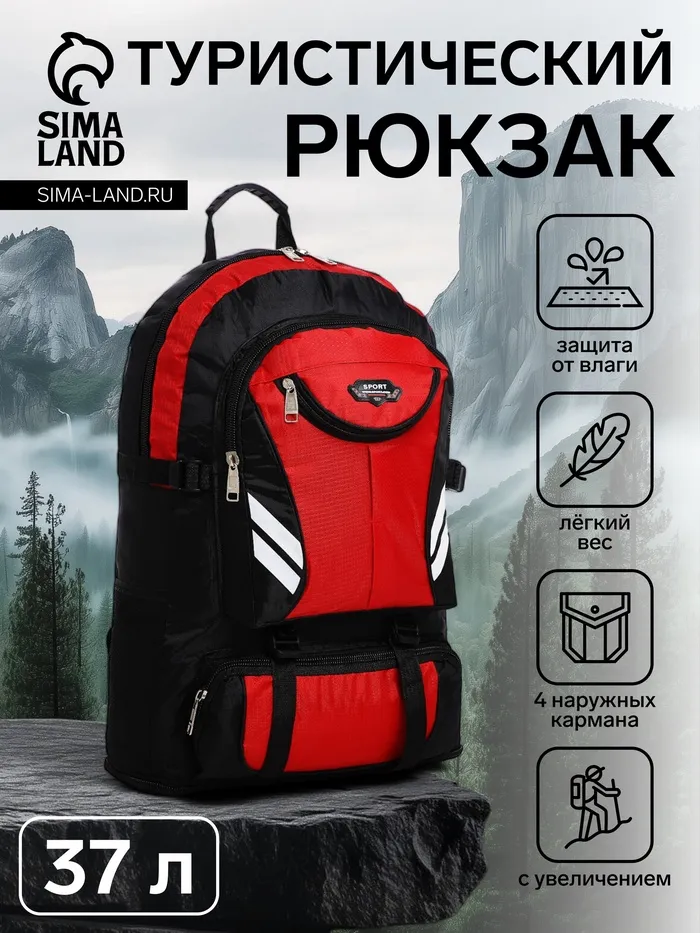 Рюкзак туристический 37 литров, с карманами, с увеличением, красный — Характеристики