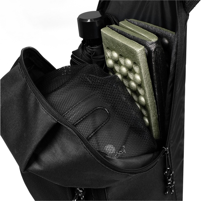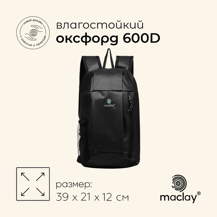 Рюкзак выполнен из влагоотталкивающей ткани оксфорд плотностью 600D, которая обеспечивает прочность и устойчивость к износу. Материал эффективно защищает содержимое от влаги и легко чистится, что делает его идеальным для активного образа жизни.