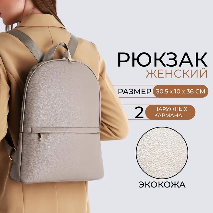 Рюкзак женский Calypso на молнии, с карманами, бежевый — Характеристики