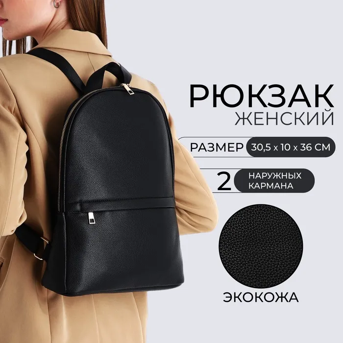 Рюкзак женский Calypso на молнии, с карманами, чёрный — Характеристики