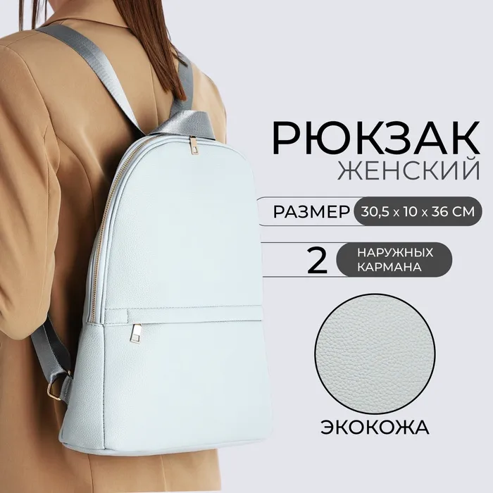 Рюкзак женский Calypso на молнии, с карманами, голубой — Характеристики
