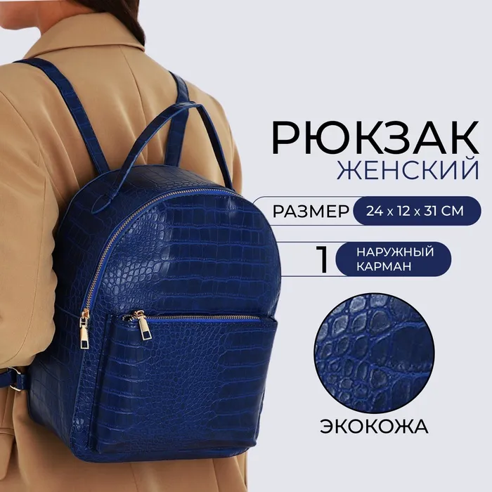 Рюкзак женский Eldaria на молнии, с карманом, синий — Характеристики