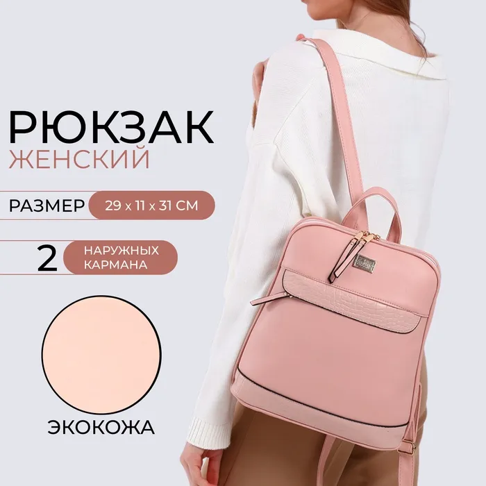 Рюкзак женский городской Astrael на молнии, розовый — Характеристики