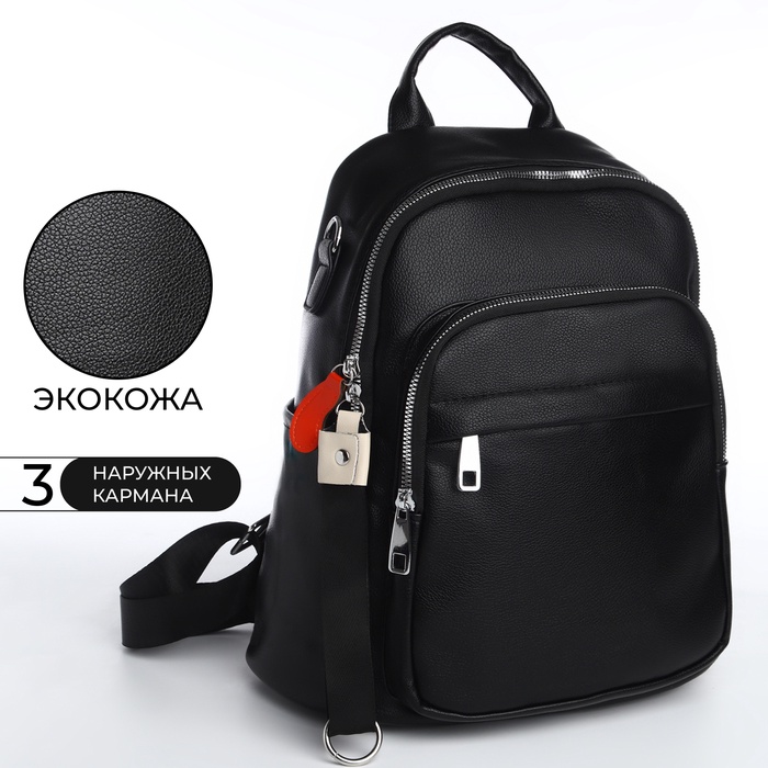 Рюкзак женский городской Galaxies на молнии, с карманами, чёрный — Характеристики