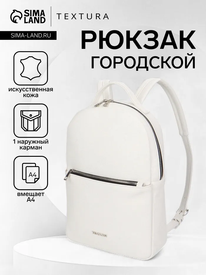 Рюкзак женский городской TEXTURA, с карманом, белый — Характеристики