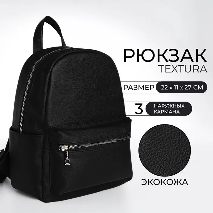 Рюкзак женский городской TEXTURA, с карманом, чёрный — Характеристики