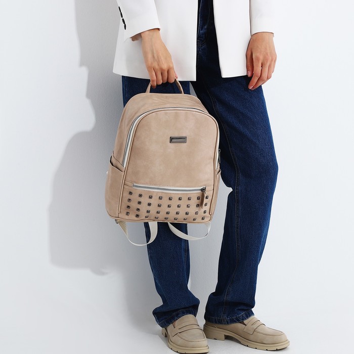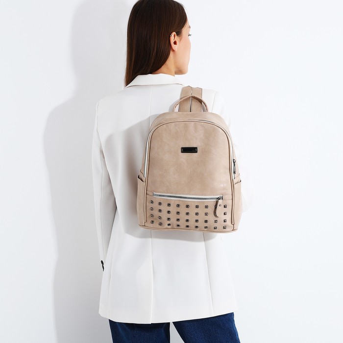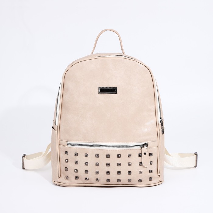 Рюкзак женский из искусственной кожи на молнии, 4 кармана, цвет бежевый — Характеристики