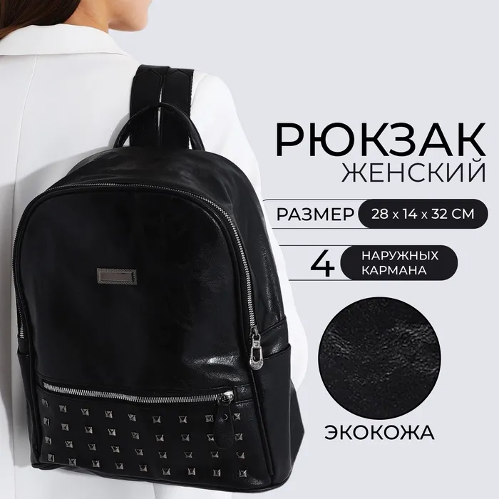 Рюкзак женский Terrania на молнии, с карманом, чёрный — Характеристики