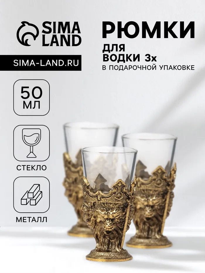 Рюмки для водки «Лев», подарочный набор на 3 персоны, рюмка 50 мл, золото — Характеристики
