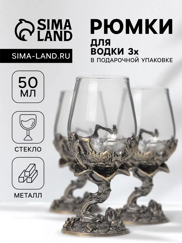 Рюмки для водки «Рыбалка», подарочный набор на 3 персоны, рюмка 50 мл, бронза — Характеристики