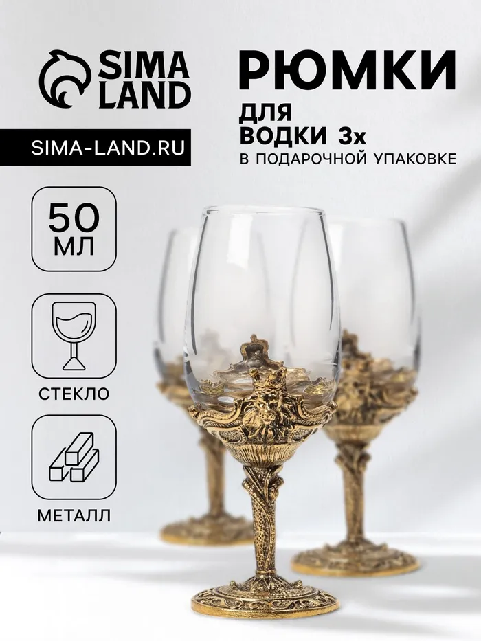 Рюмки для водки «Царь зверей», подарочный набор на 3 персоны, рюмка 50 мл, золото — Характеристики