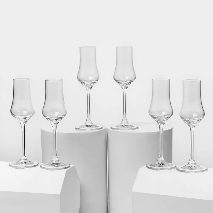 - Шесть рюмок в наборе. Достаточно для небольшой компании или дружеской встречи.