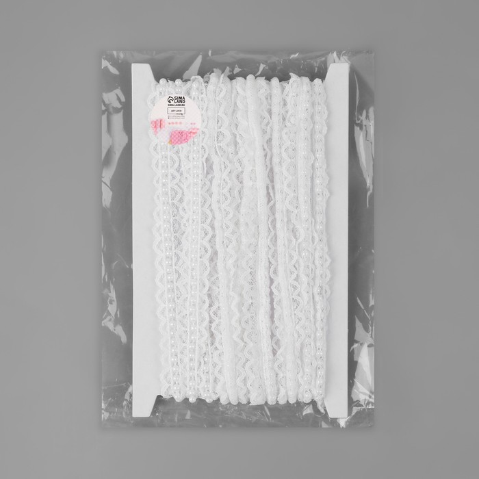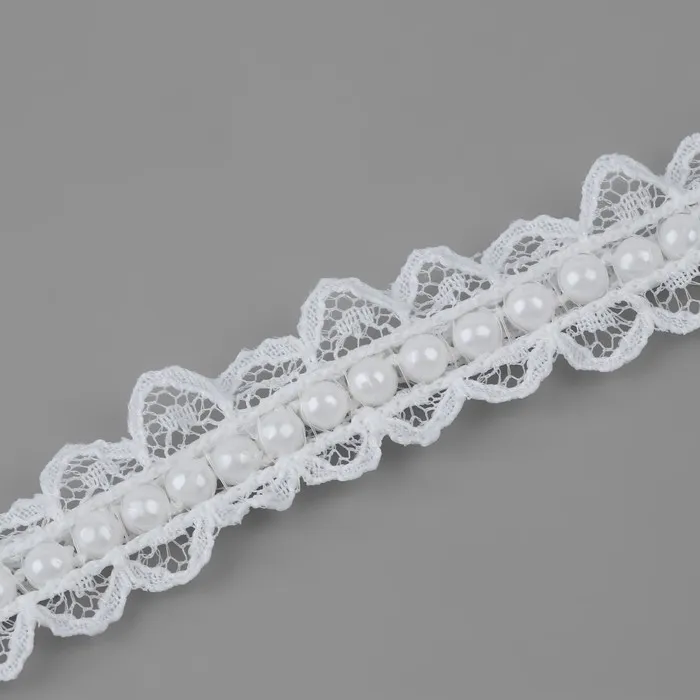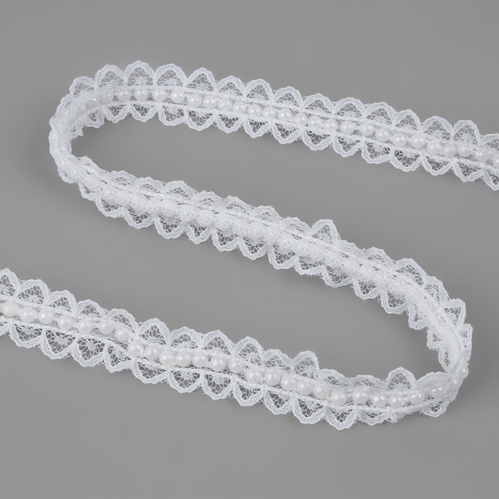 Рюш кружевной, с бусинами, 17 мм, 4.5±0.5 м, белый