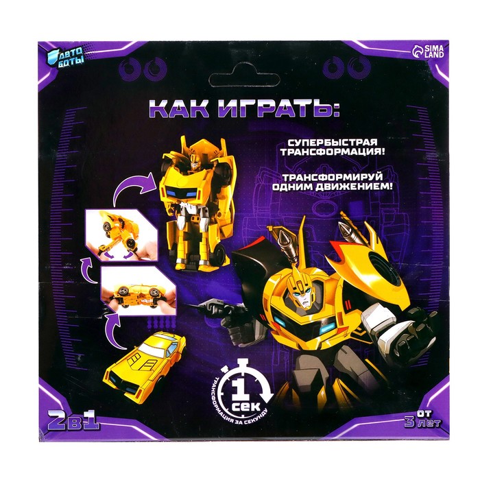 Одно движение — и машина превращается в робота! Трансформер для мальчиков — это увлекательный набор для игры с любимыми техно персонажами. Автоматическое превращение происходит легко и быстро — даже пятилетний ребёнок справится самостоятельно.