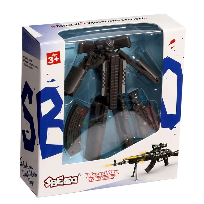 Трансформер в виде оружия станет отличным выбором для юных фанатов роботов и коллекционеров. Модель легко превращается из боевого робота в автомат, радуя ребёнка неожиданными изменениями формы. Простая конструкция без лишних деталей подойдёт даже для самых маленьких любителей трансформеров.