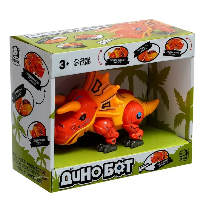 Робот «Динобот» станет любимой игрушкой малыша и поможет ему развить многие важные навыки. Динозаврик поможет ребёнку улучшить мелкую моторику рук и координацию движений благодаря проработанным деталям и дополнительным функциям. Также малыш будет придумывать новые сюжеты для игры и развивать воображение.