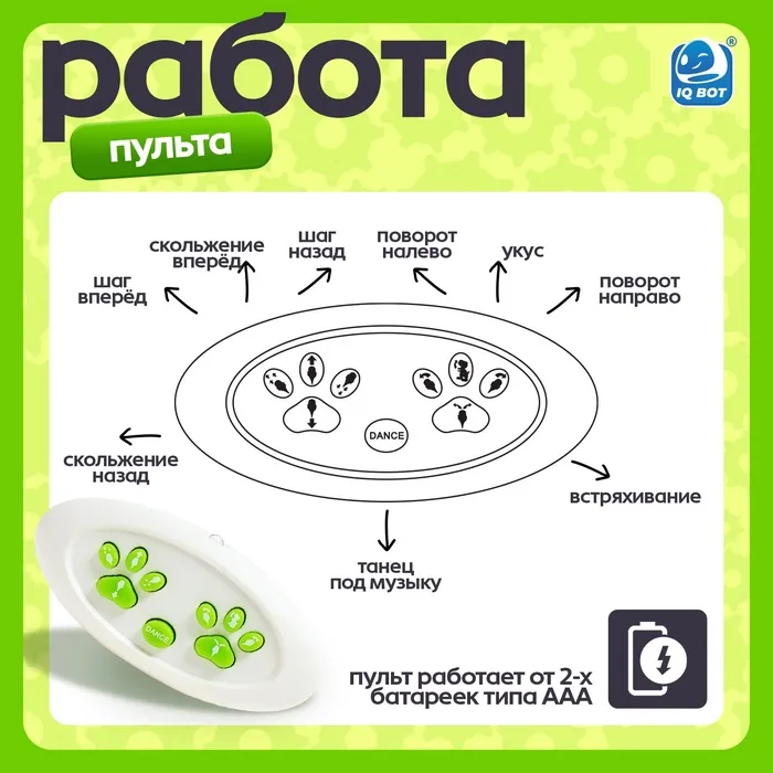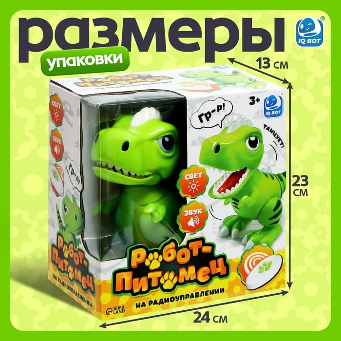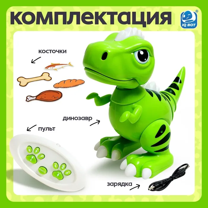 Робот динозавр «Питомец» IQ BOT, на пульте управления, интерактивный: звук, свет, танцующий, на аккумуляторе — Характеристики