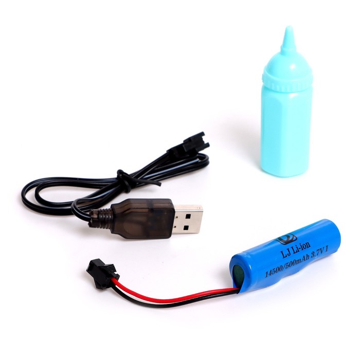 - Робот работает от аккумулятора 3,7 В 500 мА∙ч (в комплекте). Заряжается от провода USB (в комплекте).