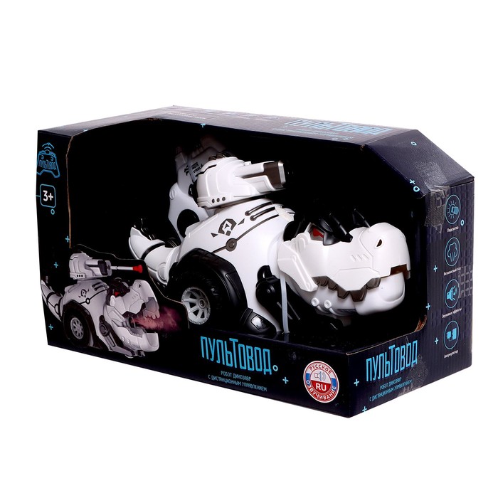 Робот динозавр «Пультовод» ZHORYA, программируемый, на пульте управления, интерактивный: свет, звук, на аккумуляторе, на русском языке, белый — Характеристики