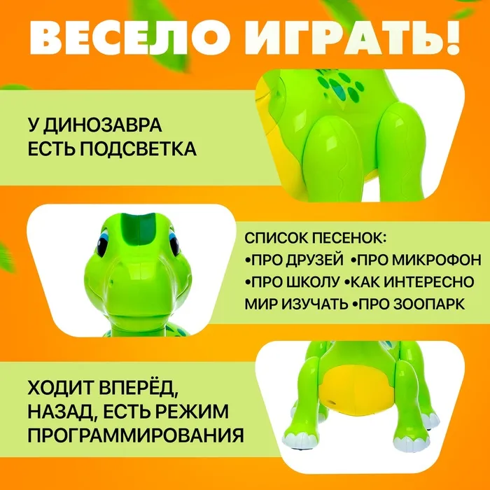 Робот динозавр «Умный питомец» ZHORYA, программируемый, на пульте управления, интерактивный: звук, свет, на батарейках, на русском языке — Характеристики