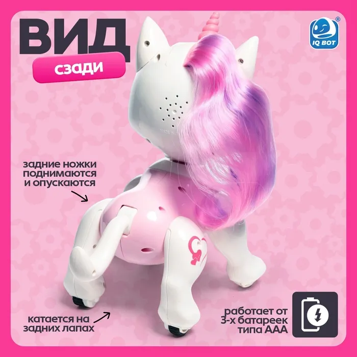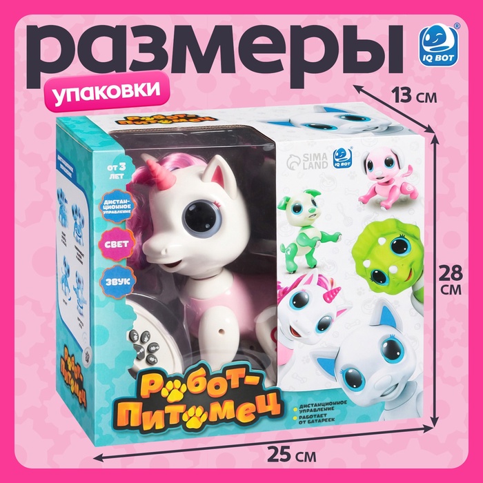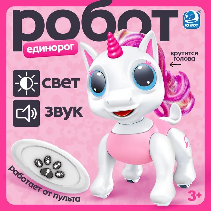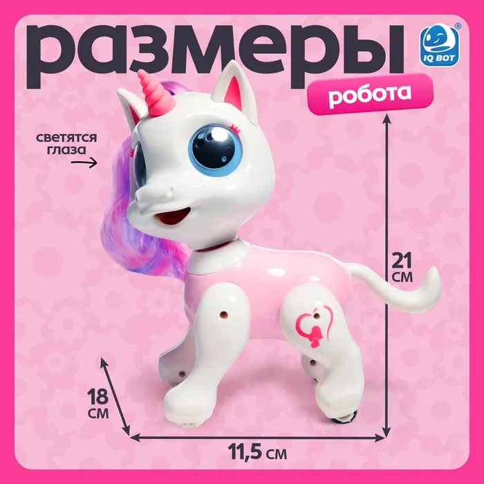 Робот единорог «Питомец» IQ BOT, на пульте управления, интерактивный: звук, свет, на батарейках — Характеристики
