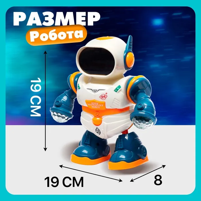 - Световые спецэффекты: глаза робота светятся, как у настоящего космического героя, а встроенные прожекторы превращают комнату в дискотеку будущего! Он мигает огнями в такт музыке, создавая настоящее световое шоу.