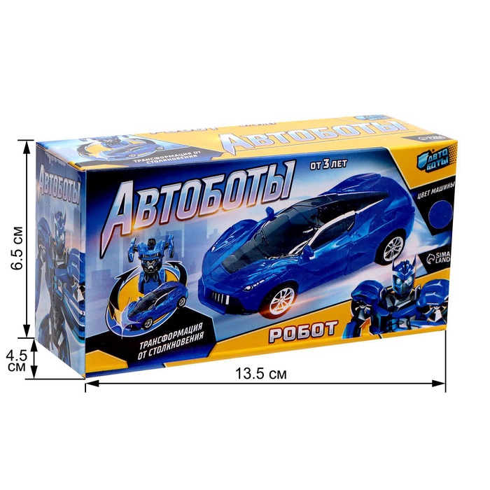 - При столкновении с любым предметом автоматически трансформируется из машинки в робота.