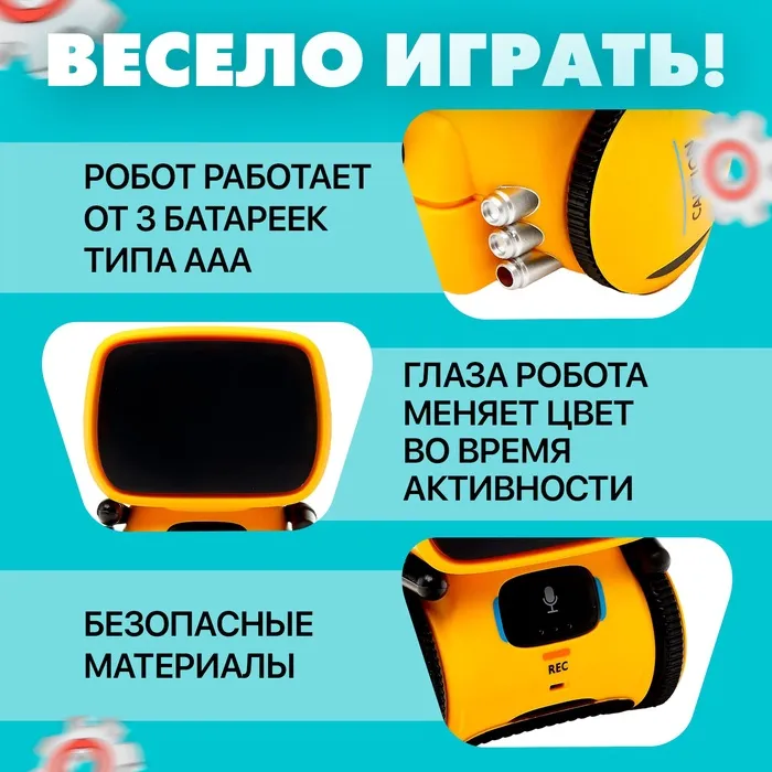 Робот интерактивный «Милый робот», световые и звуковые эффекты, русская озвучка, цвет жёлтый — Характеристики
