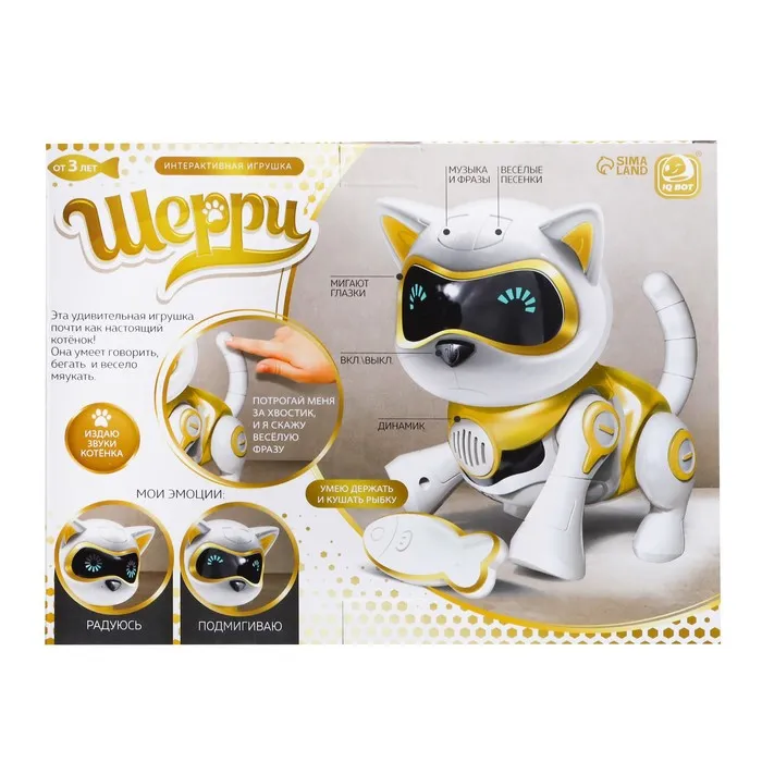 Робот кот «Шерри» IQ BOT, интерактивный: сенсорный, свет, звук, музыкальный, танцующий, на аккумуляторе, на русском языке, золотой — Характеристики