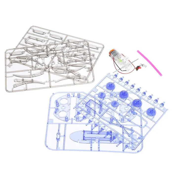 Чтобы собрать робота, ребёнку необходимо точно следовать инструкции, соединить детали, закрутить провода вокруг клемм и собрать шестерёнки.