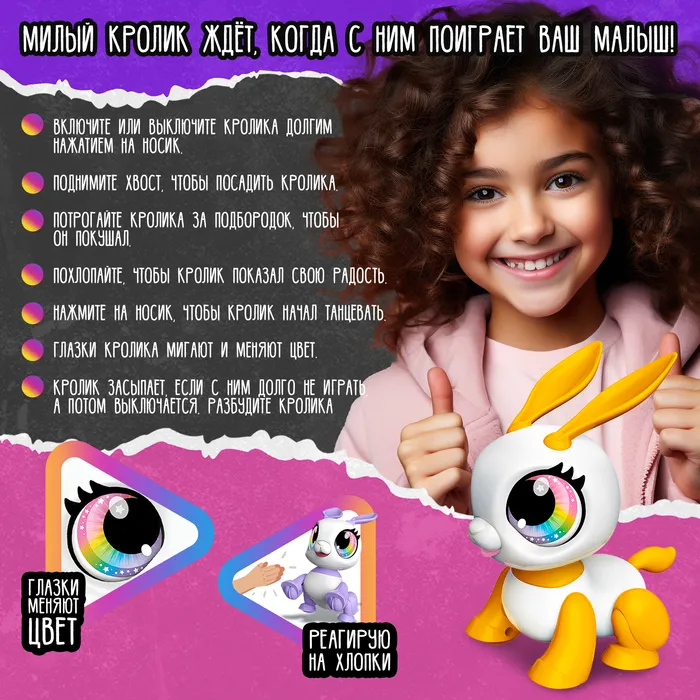 Робот-питомец «Кролик» сможет стать питомцем и верным другом для малыша! Он умеет есть, реагировать на команды и даже танцевать. Очаровательная игрушка подарит море веселья и поможет развить важные навыки.