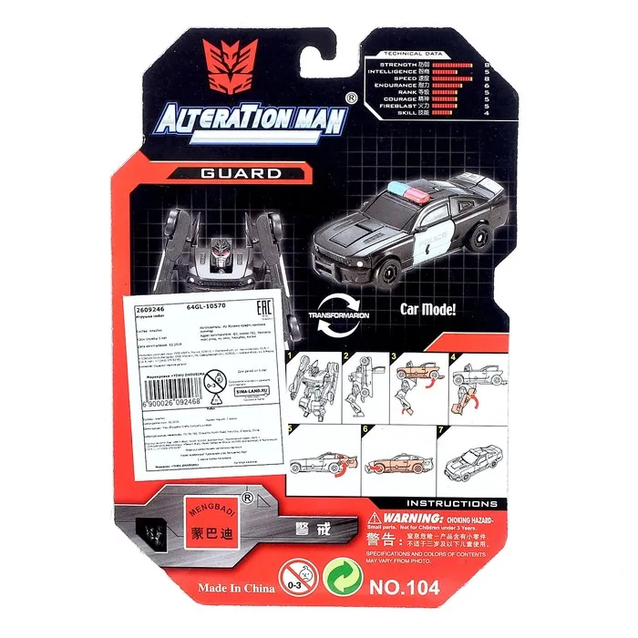 - 2 в 1: лёгкая трансформация позволяет превратить робота в полицейскую машину.
